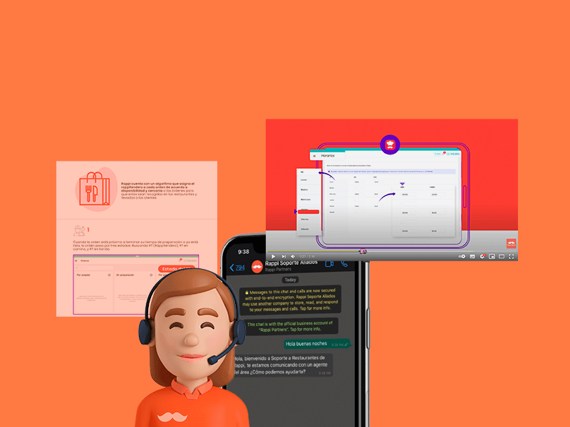Nuevo flujo de soporte:Creamos un nuevo flujo de soporte para brindarte soluciones en segundos, con vídeos y artículos que te ayudan a gestionar tu restaurante en Rappi. -