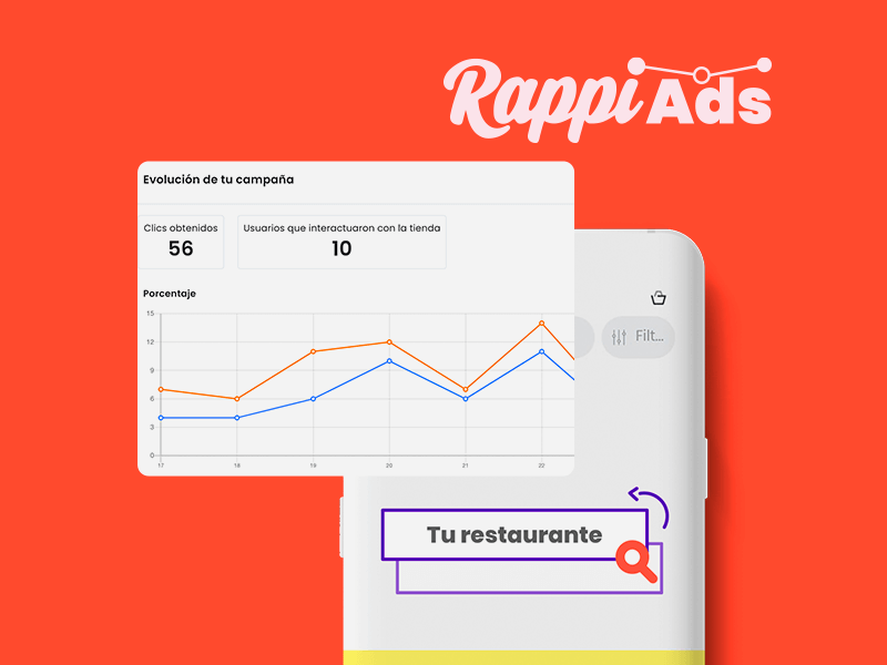 Con RappiAds, nunca pasas desapercibido:Un conjunto de herramientas con las que podrás aumentar tus ventas hasta 4 veces, con acciones para promoverte, atraer clientes, aumentar ventas y recompra. -